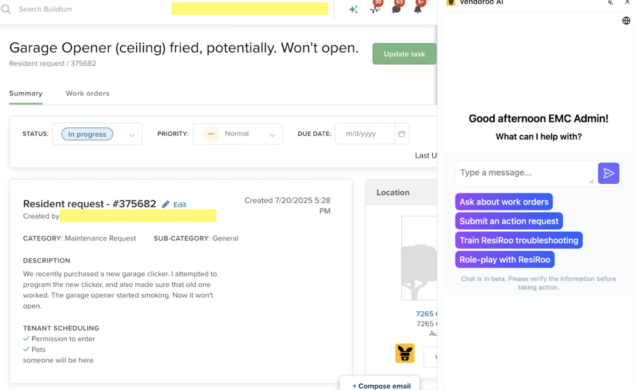 - Answering natural-language questions about work orders, residents, and vendors
