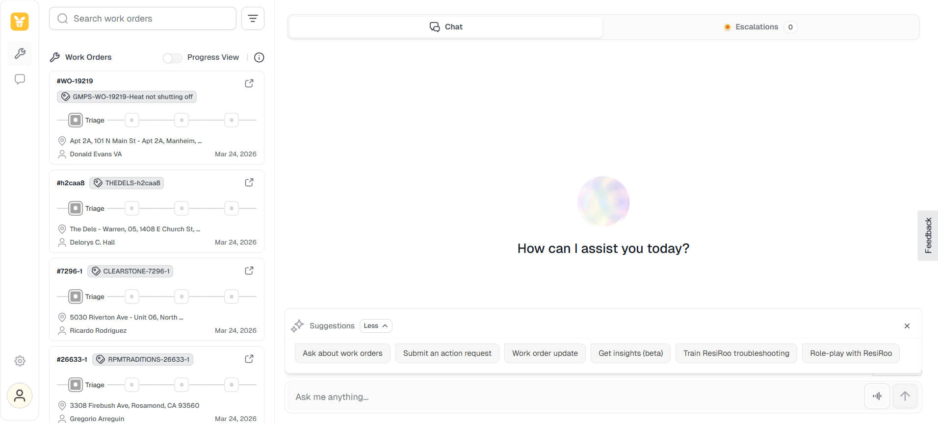 2. Work Order Updates via Chat