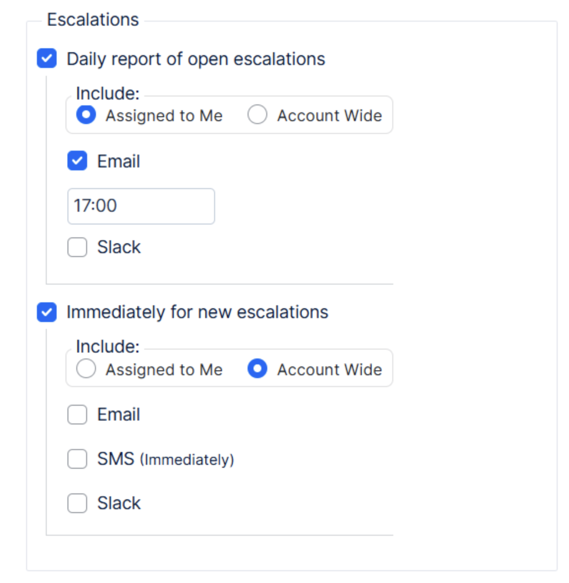 Optional account-wide alerts: Enable account-wide notifications so selected users get alerted even if the escalation isn’t assigned to them.