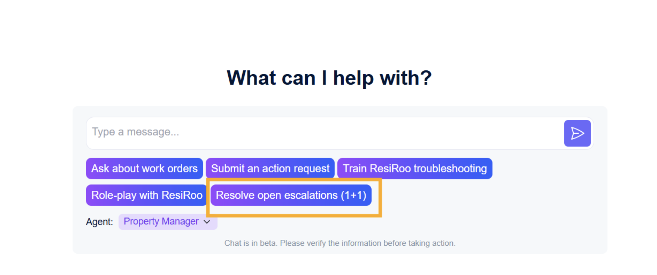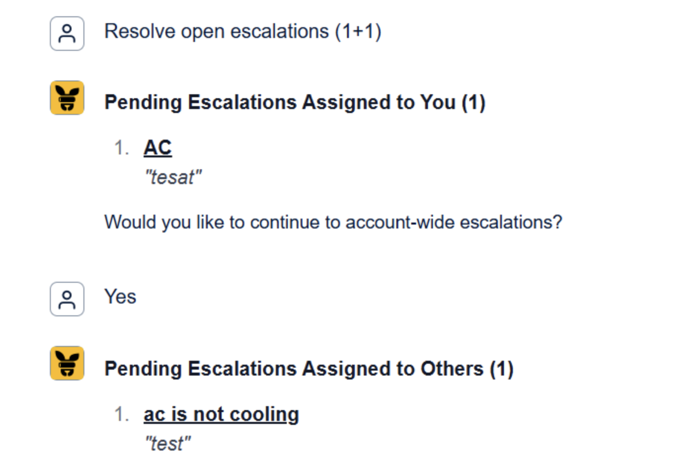 PMRoo Copilot chat: Any teammate can view and respond to pending escalations directly.