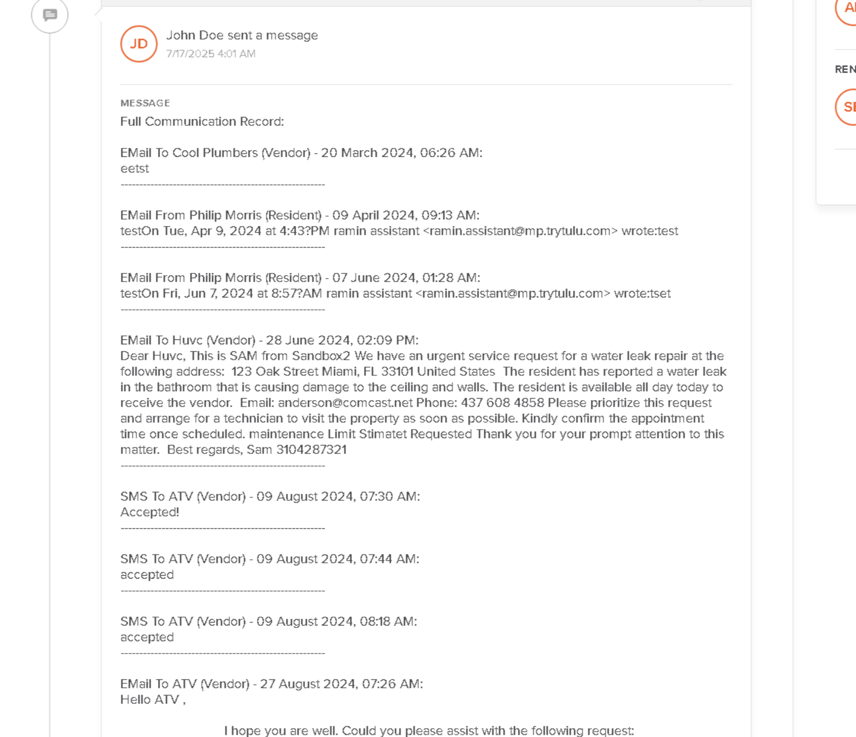 2. Complete Tenant & Vendor Communication Logs