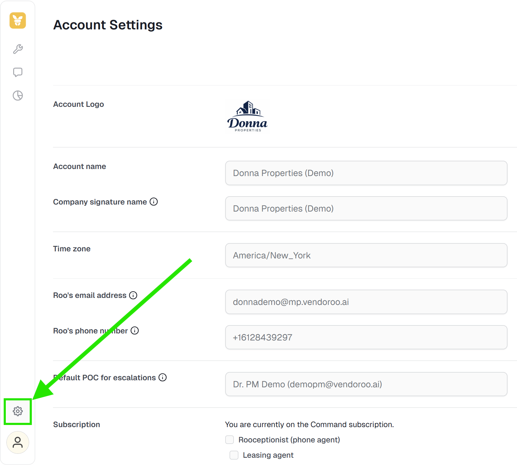 A single place to view your account’s key configuration - Roo’s contact details, subscribed services, default points of contact, door count, and more. Includes quick links to Notification Settings and the Maintenance Book.